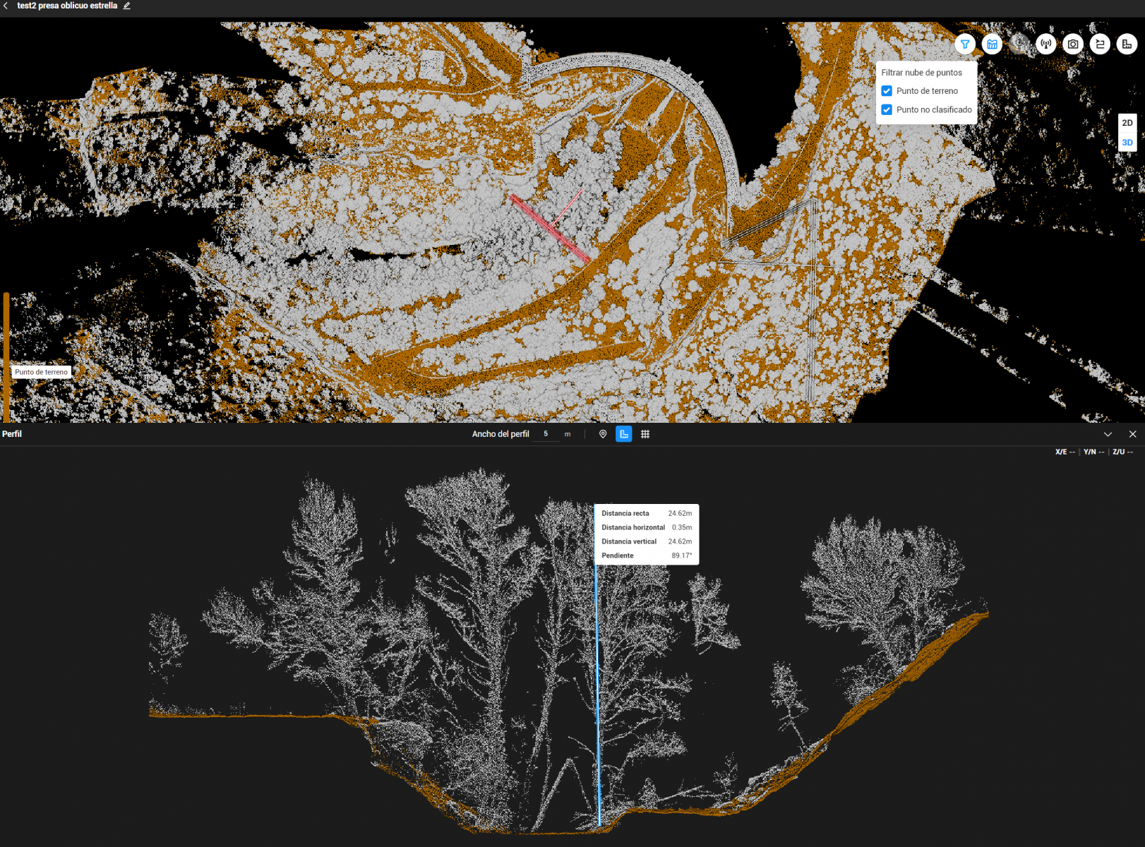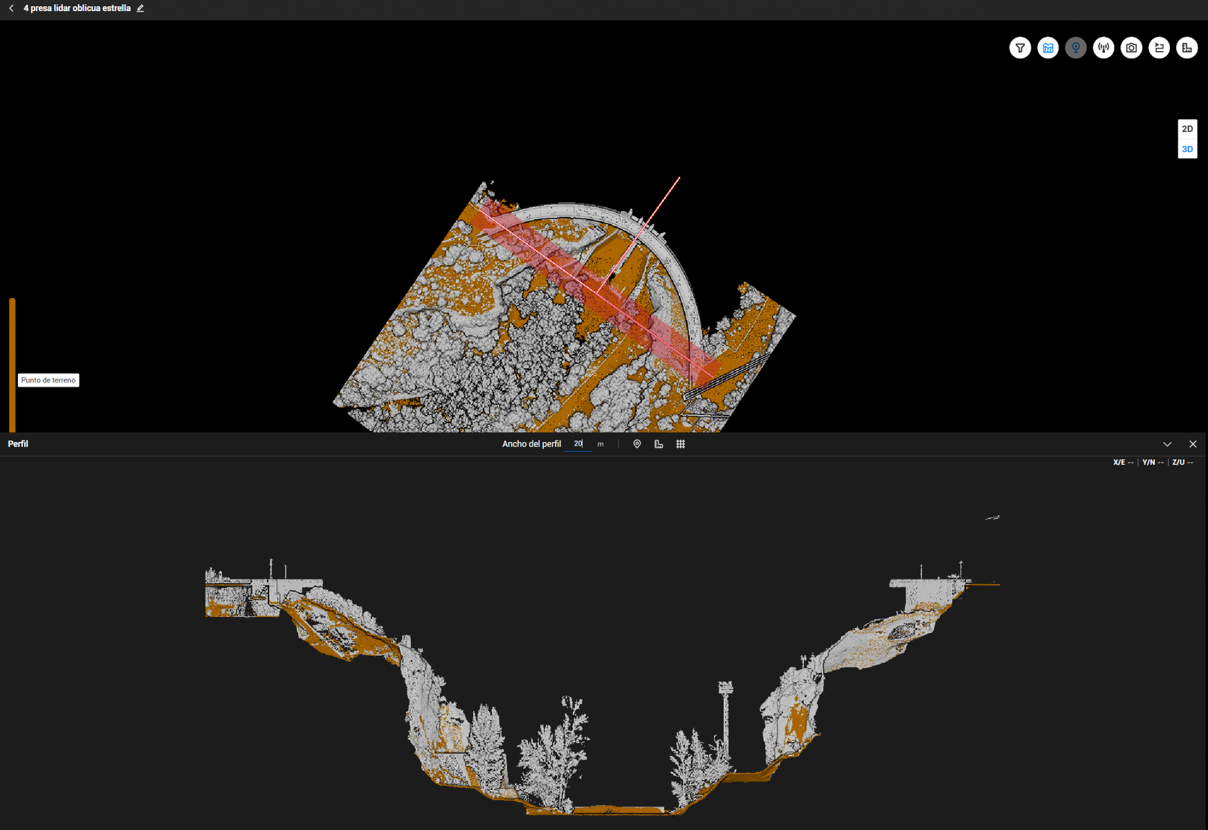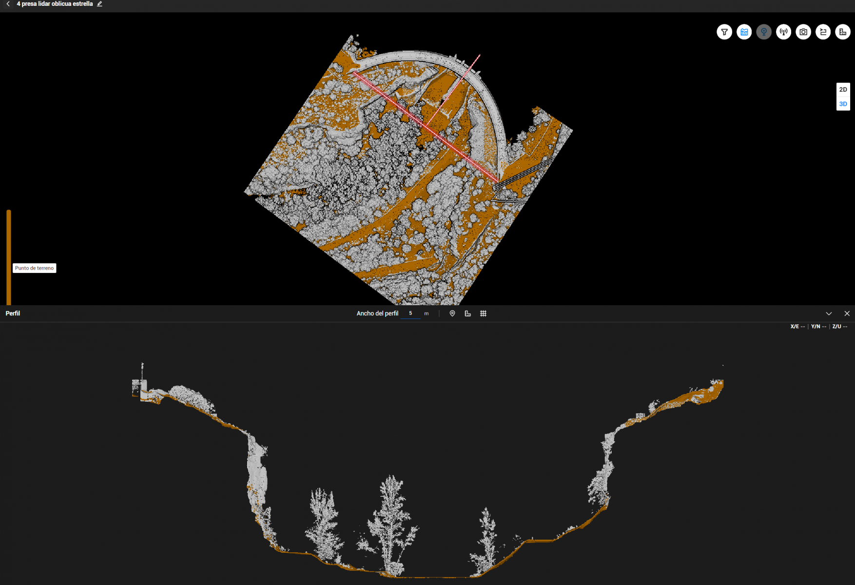 Proyecto de presa con DJI Matrice 400 RTK y Zenmuse L3 en modo oblicuo estrella.